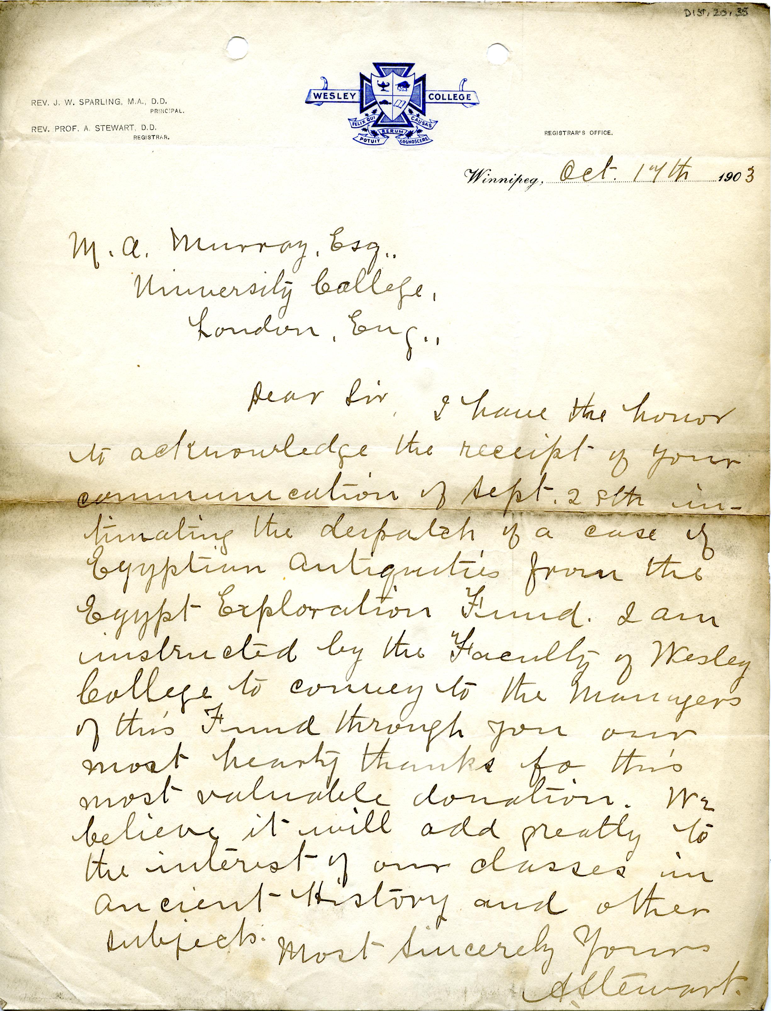 Receipt From Institution, Correspondence