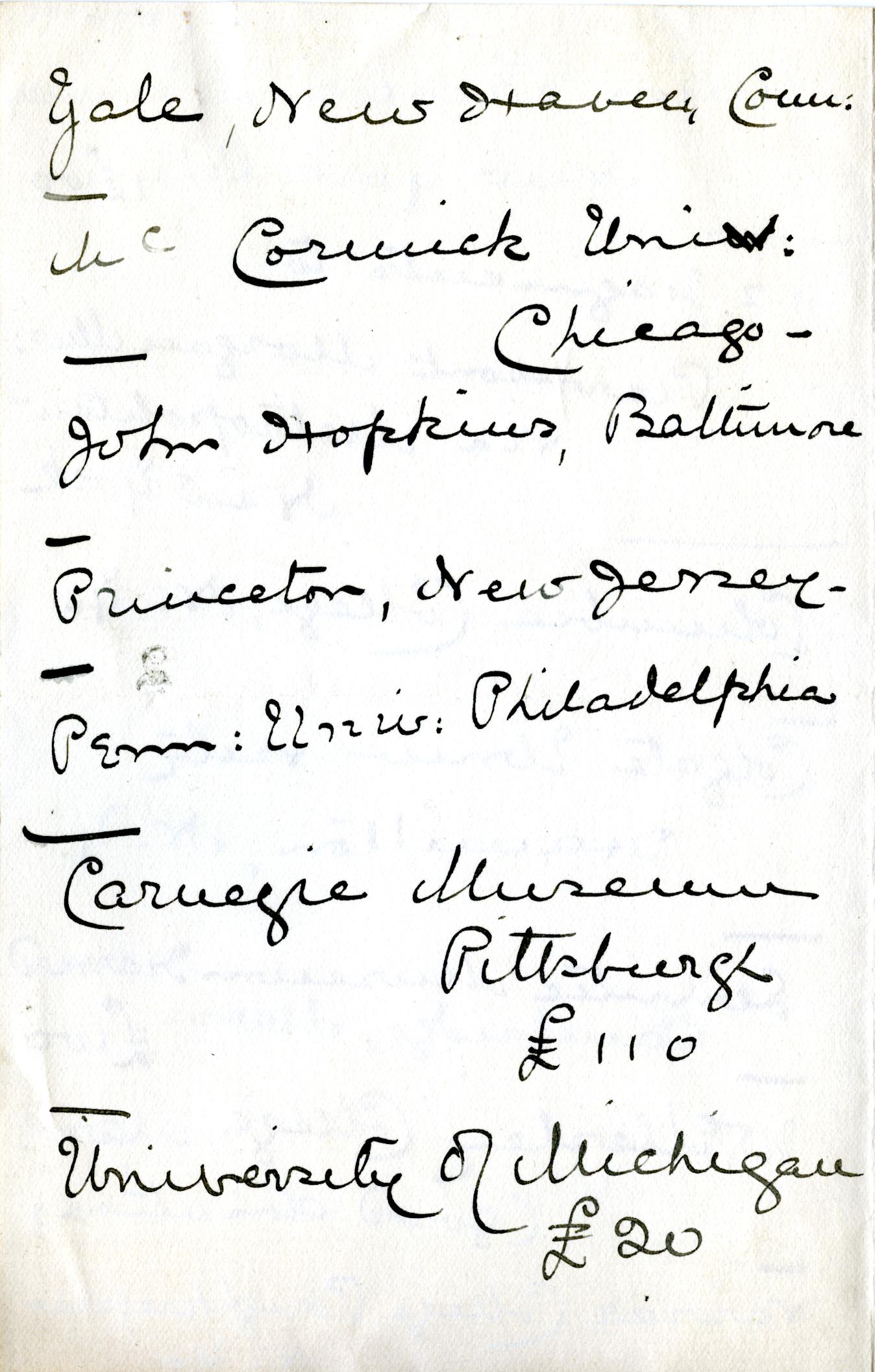 Multiple Institution List, Correspondence
