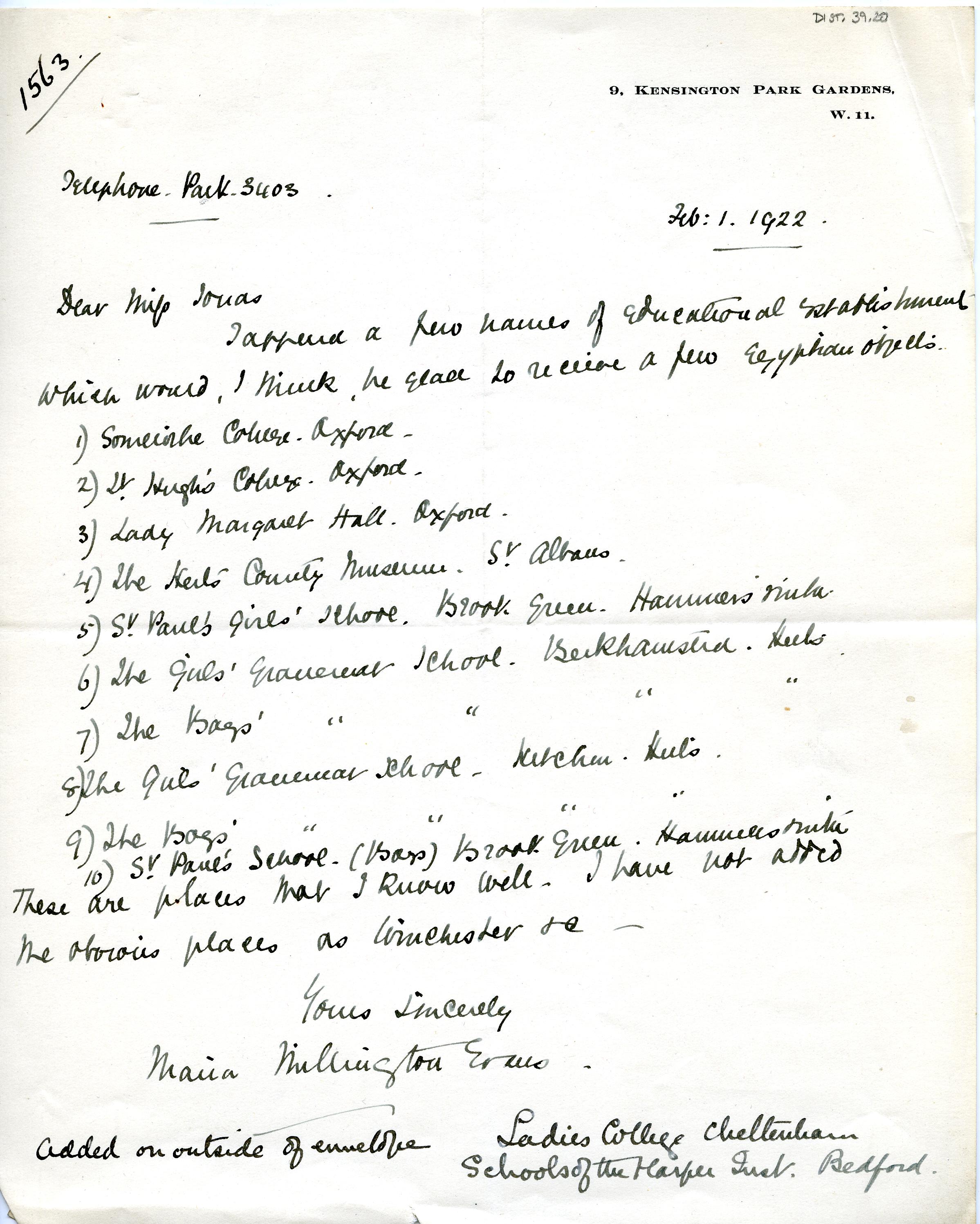 Multiple Institution List, Correspondence